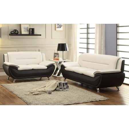 Norton 2-Piece Black and Beige Faux Leather Modern Living ...